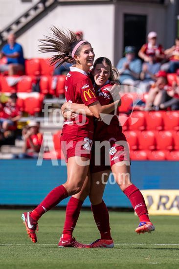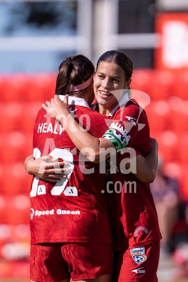 2863023 Erin Healy (22 Adelaide United) comemora seu gol com a capita Ella Tonkin (13 Adelaide United) durante a partida da Ninja A-League Feminina entre Adelaide United e Western Sydney Wanderers no Coopers Stadium em Adelaide, Australia. (Noe Llamas / SPP)