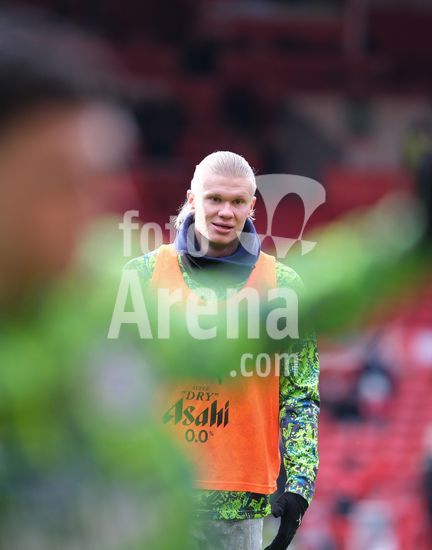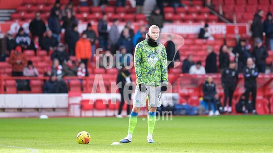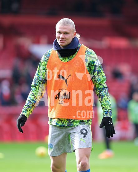 2863052 Erling Haaland, do Manchester City, durante o aquecimento pre-jogo na partida da Premier League entre Nottingham Forest e Manchester City, no City Ground, em Nottingham. (Paul Bonser/Sports Press Photo / SPP)