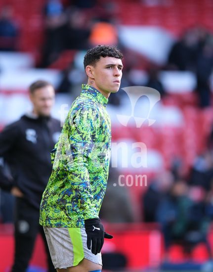 2863051 Phil Foden, do Manchester City, durante o aquecimento pre-jogo na partida de futebol da Premier League entre Nottingham Forest e Manchester City, no City Ground, em Nottingham. (Paul Bonser/Sports Press Photo / SPP)