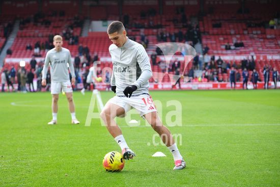 2863055 Nicolas Dominguez, do Nottingham Forest, durante o aquecimento pre-jogo na partida de futebol da Premier League entre Nottingham Forest e Manchester City, no City Ground, em Nottingham. (Paul Bonser/Sports Press Photo / SPP)