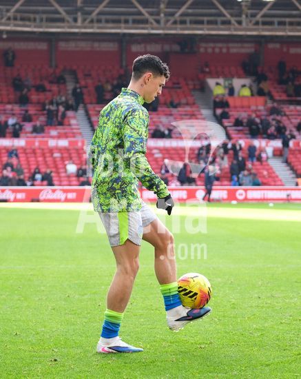 2863065 Nicolo Savona, do Nottingham Forest, durante o aquecimento pre-jogo na partida de futebol da Premier League entre Nottingham Forest e Manchester City, no City Ground, em Nottingham. (Paul Bonser/Sports Press Photo / SPP)