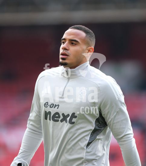 2863056 Neco Williams, do Nottingham Forest, durante o aquecimento pre-jogo na partida da Premier League entre Nottingham Forest e Manchester City, no City Ground, em Nottingham. (Paul Bonser/Sports Press Photo / SPP)