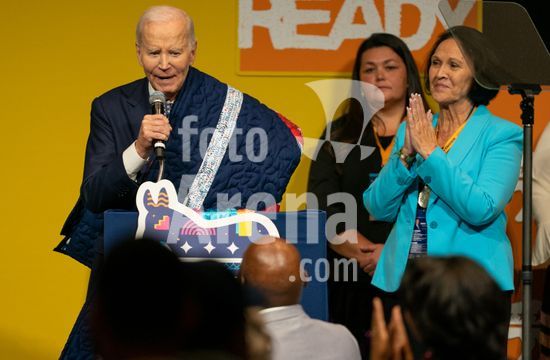 ny081125110211 Joe Biden is presented a quilt by Native American tribal leaders as he speaks at the Nebraska Democratic Party Ben Nelson Gala at the Hilton Omaha in Omaha, Neb., Friday, Nov. 7, 2025. (Christopher Smith/The New York Times/Fotoarena)