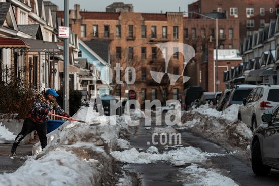 ny070226180815 A resident shovels a pathway through a dirty drift in the Woodside neighborhood of Queens, Feb. 6, 2026. The magical beauty of inches of pristine snow blanketing the entirety of New York City has given way to the reality of stuck cars, grimy snowdrifts and the treacherous challenges of just getting around as the heaps of snow and ice stubbornly stay frozen. (Todd Heisler/The New York Times/Fotoarena)