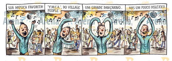 136-07pt MACANUDO, VOLUME 7, PORTUGUÊS, ZARABATANA BOOKSDiálogo- Sua música favorita! "YMCA", do Village People. Um grande dançarino, mas um pouco disléxico.