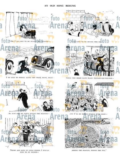 PCL113351 "An Old Song Resung. ""Oh, I do like to be beside the seaside — I do like to be beside the sea — I do like to stroll along the prom, prom, prom — while the brass band plays tiddley-om-pom-pom — So just put me down beside the seaside — And I'll be beside myself with glee — There are lots of girls beside I would like to be beside — Beside the seaside, beside the sea.""" *** Local Caption *** An Old Song Resung