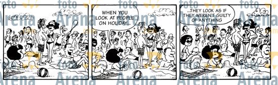1066en TIRA MAFALDA, CÓDIGO ORIGINAL 1066, INGLÊS, EDICIONES DE LA FLORDiálogoMafalda: When you look at people on holiday... They look as of the weren't guilty of anything.