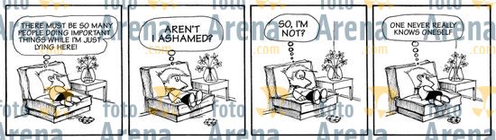 1336en TIRA MAFALDA, CÓDIGO ORIGINAL 1336, INGLÊS, EDICIONES DE LA FLORDiálogoFelipe: There must be so many people doing important things while I'm just lying here! Aren't I ashamed? So, I'm not? One never really knows oneself.
