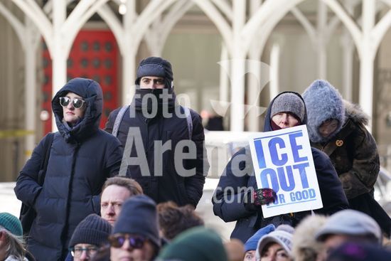 2631J02_KH030 Protesters at a public appearance for The Peoples Filibuster Protest For Humanity, The Public Theater, New York, NY, January 31, 2026. Photo By: Kristin Callahan/Everett Collection/ Fotoarena