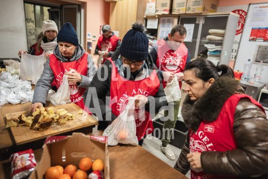 ny100226232612 **EMBARGO: No electronic distribution, Web posting or street sales before WEDNESDAY, 12:01 A.M. ET, FEB. 11, 2026. No exceptions for any reasons. EMBARGO set by source.** Volunteers at the City Angels headquarters prepare food bags fro distribution in Milan on Sunday, Feb. 8, 2026. Six homeless people have died in the Italian city in recent weeks, highlighting the widening inequality as the Games unfold there. (Alessandro Grassani/The New York Times/Fotoarena)