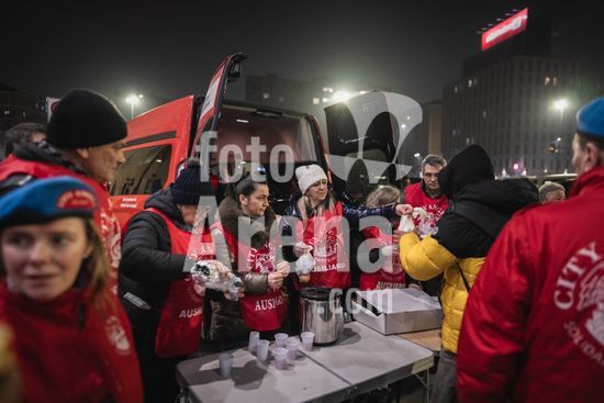ny100226232615 **EMBARGO: No electronic distribution, Web posting or street sales before WEDNESDAY, 12:01 A.M. ET, FEB. 11, 2026. No exceptions for any reasons. EMBARGO set by source.** Volunteers distribute food, hot drinks, and clothing outside a train station in Milan on Sunday, Feb. 8, 2026. Six homeless people have died in the Italian city in recent weeks, highlighting the widening inequality as the Games unfold there. (Alessandro Grassani/The New York Times/Fotoarena)