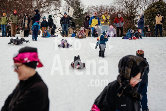ny070226200613 Children sled down a snowy hill as hundreds of people gathered at Powderhorn Park in Minneapolis to commemorate the life of Renee Nicole Good, a month after she was shot dead by a federal immigration agent, on Saturday, Feb. 7, 2026. In her first public appearance since her partner was killed, Becca Good stood on a stage as a statement was read in her name, thanking the community. (Jamie Kelter Davis/The New York Times/Fotoarena)