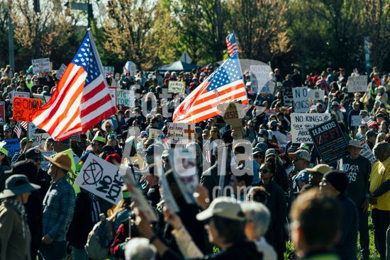 ny280326115512 People carrying signs and flags participate in the ÒNo KingsÓ rally, a planned march around Georgia State Capitol, in Atlanta on Saturday, March 28, 2026. More than 3,000 events were planned Saturday across the country under the ÒNo KingsÓ banner to protest the Trump administrationÕs actions on immigration, elections, health care, the environment, war in the Middle East and more. (Audra Melton/The New York Times/Fotoarena)