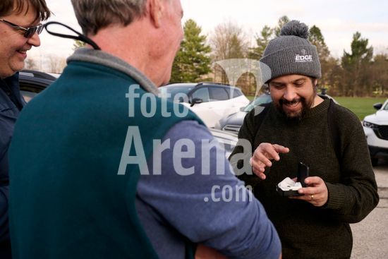 ny220326141812 Meteorite hunter Roberto Vargas, right, shows off a eucrite meteorite he found in a field in Wadsworth, Ohio to a small crowd of people in a golf club parking lot in Wadsworth, Ohio on Thursday, March 19, 2026. After a seven-ton fireball exploded above the Cleveland area, a group of meteorite hunters descended too, in the name of science ? and possibly cash. (Dustin Franz/The New York Times/Fotoarena)