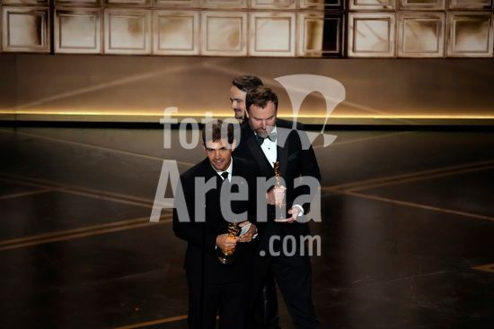 ny150326220413 Natalie Musteata, front left, and Alexandre Singh, right, accept the award for best live action short film for ÒTwo People Exchanging Saliva,Ó during the 98th Academy Awards at the Dolby Theatre in Los Angeles on Sunday, March 15, 2026. (Philip Cheung/The New York Times/Fotoarena)