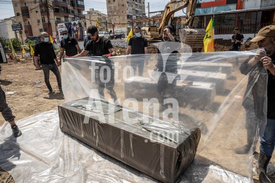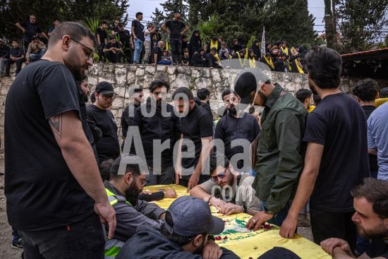 ny200426121711 Mourners gather by coffins draped in the Hezbollah flag as a convoy of ambulances arrive in the southern Lebanese village of Bazourieh for a mass funeral, on Monday, April 20, 2026. Families gathered for the funeral of nine people ? both Hezbollah fighters and civilians ? who were killed in recent weeks (David Guttenfelder/The New York Times/Fotoarena)