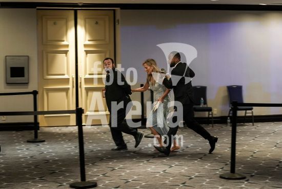 990_05_7-Crime-Trial_2HR Washington, D.C.: April 10, 1928. The jury members of the Teapot Dome Trial trying oilman Harry Sinclair for fraud are escorted by U.S. Marshals on their way to lunch to avoid another mistrial.The previous trial ended when Sinclair was accused of trying to bribe jury members.