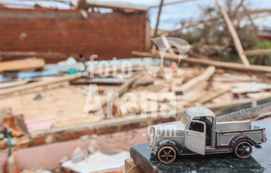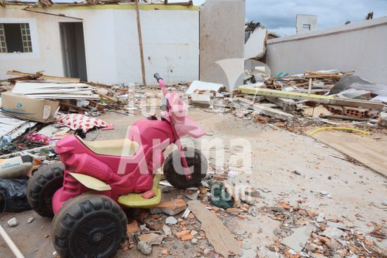 2843822 Máquinas, voluntários de diversos órgãos do governo do estado e da prefeitura de Rio Bonito do Iguaçu, no Sudoeste do Paraná, estão atuando em conjunto para demolir casas e pontos de comércio, condenados pela Defesa Civil, após um tornado destruir 90% da cidade na noite da última sexta-feira (7). O fenômeno climático foi reclassificado como F3 na Escala Fujita, segundo o SIMEPAR, com ventos superiores a 250 km/h. O tornado deixou um rastro de destruição na área urbana e rural do município. Cerca de 4000 pessoas estão desabrigadas, 700 ficaram feridos e cinco pessoas morreram.