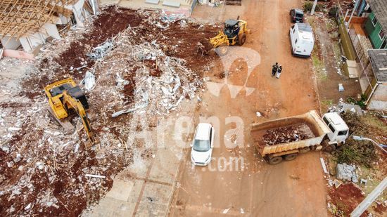2843734 Máquinas, voluntários de diversos órgãos do governo do estado e da prefeitura de Rio Bonito do Iguaçu, no Sudoeste do Paraná, estão atuando em conjunto para demolir casas e pontos de comércio, condenados pela Defesa Civil, após um tornado destruir 90% da cidade na noite da última sexta-feira (7). O fenômeno climático foi reclassificado como F3 na Escala Fujita, segundo o SIMEPAR, com ventos superiores a 250 km/h. O tornado deixou um rastro de destruição na área urbana e rural do município. Cerca de 4000 pessoas estão desabrigadas, 700 ficaram feridos e cinco pessoas morreram.