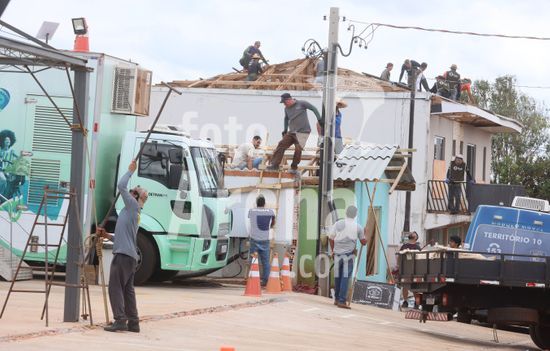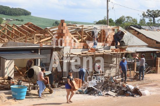 2843850 Máquinas, voluntários de diversos órgãos do governo do estado e da prefeitura de Rio Bonito do Iguaçu, no Sudoeste do Paraná, estão atuando em conjunto para demolir casas e pontos de comércio, condenados pela Defesa Civil, após um tornado destruir 90% da cidade na noite da última sexta-feira (7). O fenômeno climático foi reclassificado como F3 na Escala Fujita, segundo o SIMEPAR, com ventos superiores a 250 km/h. O tornado deixou um rastro de destruição na área urbana e rural do município. Cerca de 4000 pessoas estão desabrigadas, 700 ficaram feridos e cinco pessoas morreram.