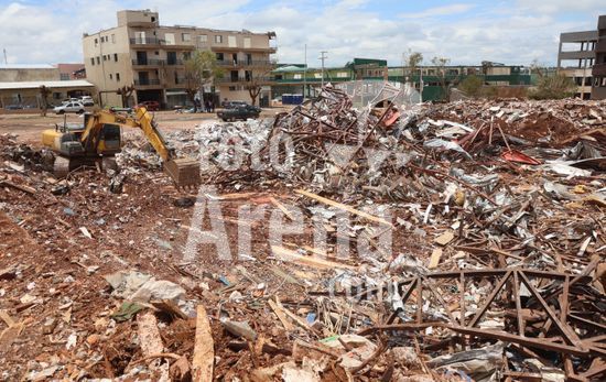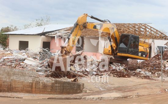 2843832 Máquinas, voluntários de diversos órgãos do governo do estado e da prefeitura de Rio Bonito do Iguaçu, no Sudoeste do Paraná, estão atuando em conjunto para demolir casas e pontos de comércio, condenados pela Defesa Civil, após um tornado destruir 90% da cidade na noite da última sexta-feira (7). O fenômeno climático foi reclassificado como F3 na Escala Fujita, segundo o SIMEPAR, com ventos superiores a 250 km/h. O tornado deixou um rastro de destruição na área urbana e rural do município. Cerca de 4000 pessoas estão desabrigadas, 700 ficaram feridos e cinco pessoas morreram.