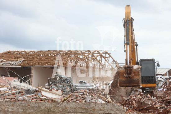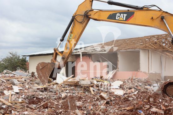 2843827 Máquinas, voluntários de diversos órgãos do governo do estado e da prefeitura de Rio Bonito do Iguaçu, no Sudoeste do Paraná, estão atuando em conjunto para demolir casas e pontos de comércio, condenados pela Defesa Civil, após um tornado destruir 90% da cidade na noite da última sexta-feira (7). O fenômeno climático foi reclassificado como F3 na Escala Fujita, segundo o SIMEPAR, com ventos superiores a 250 km/h. O tornado deixou um rastro de destruição na área urbana e rural do município. Cerca de 4000 pessoas estão desabrigadas, 700 ficaram feridos e cinco pessoas morreram.