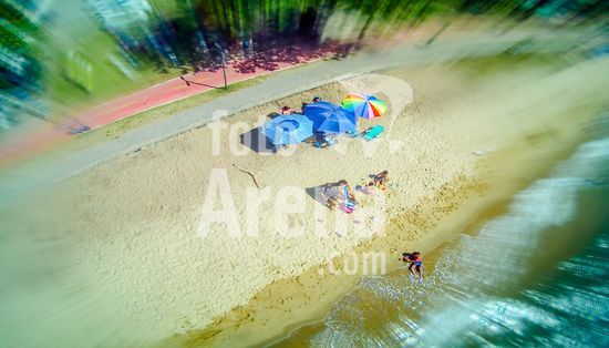 990_05_9-US-IL-Chi-Rec_8HR Chicago, Illinois: July 3, 1928 A water fight on a hot day at the Oak Street Beach which is the most popular beach for the near north siders. © Underwood Archives / The Image Works