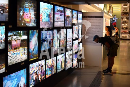 2912458 Exposição HIP-HOP 80?sp ? São Paulo na Onda do Break, no Sesc 24 de Maio em São Paulo. HIP-HOP 80?sp tem idealização e curadoria de OSGEMEOS, Rooneyoyo O Guardião, KL Jay (DJ histórico dos Racionais MC?s), Thaíde, as pioneiras Sharylaine e Rose MC e o b-boy ALAM Beat.Mostra reúne mai de 3 mil peças entre equipamentos de som originais, flyers de bailes black e roupas de época.Arte. Música. Cultura Afro. Hip Hop. Na foto, pessoas visitam a exposição.