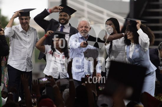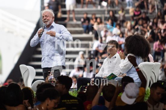 2915758 O presidente Luiz Inácio Lula da Silva participa do evento Universidade com a Cara do Povo Brasileiro, celebrando 21 anos do Prouni e 14 da Lei de Cotas. A cerimônia acontece na tarde desta terça-feira (31) em São Paulo (SP). Na foto, Lula com ato normativo sobre a Programa Nacional Escola Nacional Hip Hop H2E.