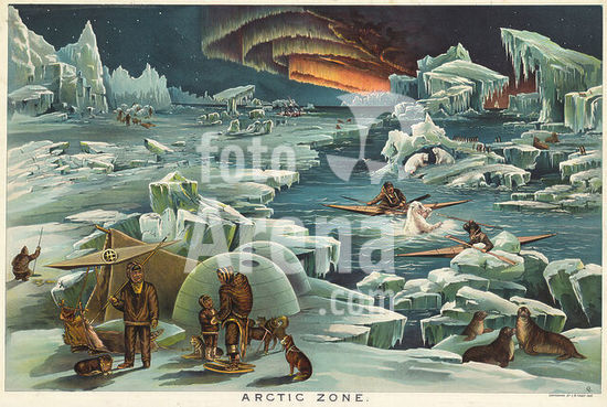 akg5862645 Geografie:. Karten / Schautafeln. "ARCTIC ZONE.". (Nordpolargebiet). Schautafel. Farblithografie von Levi Walter Yaggy (1848-1912). Aus einem Kasten mit 12 Schautafeln zur Geografie und Astronomie für den Schulunterricht. Chicago (C.F.Rassweiler & Co.) 1893.