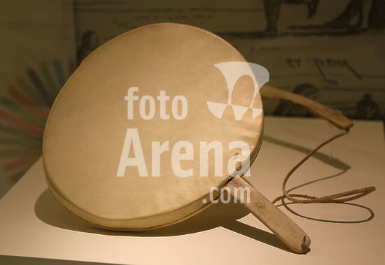 alb11641028 Inuit. Qilaat. Drum. Material: Polar bear intestine and caribou bones. Greenland. Museum of Cutures of the World. Barcelona. Spain.