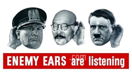 alb3879826 Digitally restored war propaganda poster. This vintage World War Two poster features the Italian, Japanese, and German leaders of the Axis Powers during WW2. It declares - Enemy Ears Are Listening.