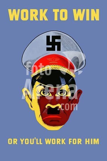 alb3889124 Digitally restored war propaganda poster. This vintage World War II poster features a cartoon Adolf Hitler. It declares - Work to win or you'll work for him.