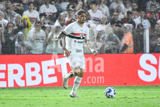2838364 Luciano do São Paulo durante partida entre São Paulo x Bragantino, válida pela trigésima terceira rodada do Campeonato Brasileiro de Futebol 2025, neste sábado (8), na Vila Belmiro em Santos, SP.