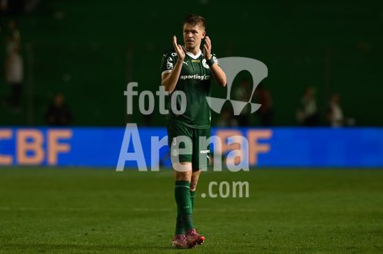 2835018 Imagens da partida de futebol entre o Juventude e o Palmeiras, disputada no Estádio Alfredo Jaconi, válida pela 31ª rodada do Campeonato Brasileiro 2025, Série A. B. Fuchs, jogador do Palmeiras agradece a torcida. Caxias do Sul, RS (02).