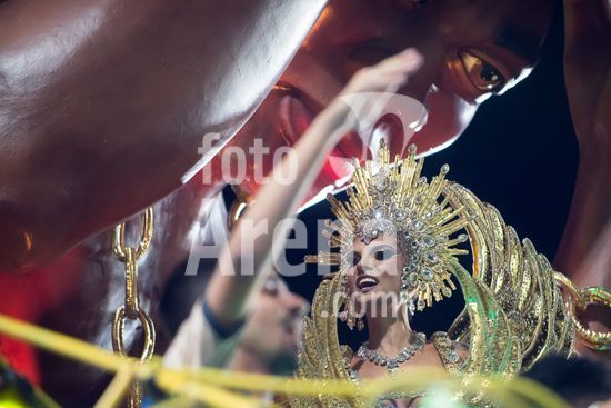 2892669 O desfile das campeãs 2026 aconteceu neste sábado (21), no sambódromo de Anhembi, em São Paulo. Na foto, a escola de samba Acadêmicos do Tucuruvi, com a rainha da bateria Carla Prata.