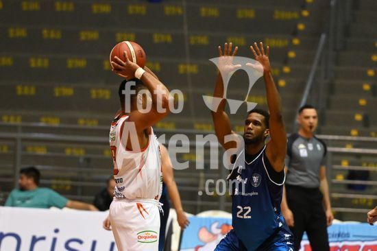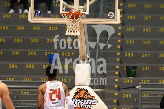 2835425 Imagens da partida de basquete entre o Caxias do Sul Basquete e Rio Claro, disputada no Ginásio do SESI, válida pela quarta rodada do Caxias do Sul Basquete no NBB 25/26. Último lance do jogo, Shamell. Caxias do Sul, RS (03).