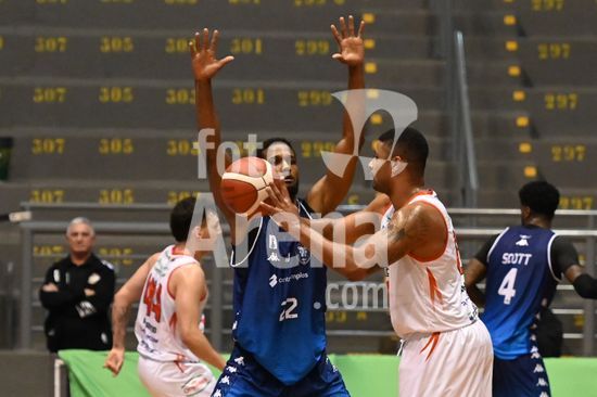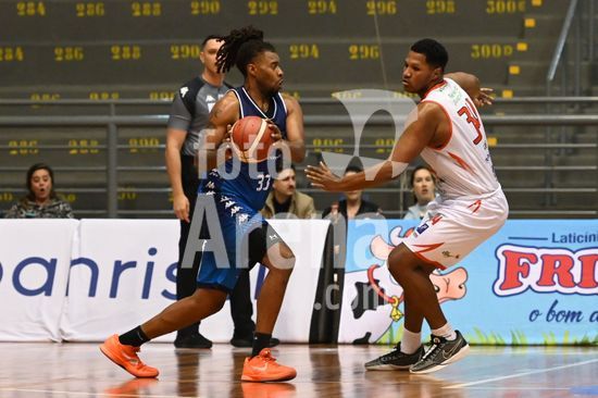 2835366 Imagens da partida de basquete entre o Caxias do Sul Basquete e Rio Claro, disputada no Ginásio do SESI, válida pela quarta rodada do Caxias do Sul Basquete no NBB 25/26. Scott do Rio Claro e Vezaro do Caxias do Sul Basquete. Caxias do Sul, RS (03).