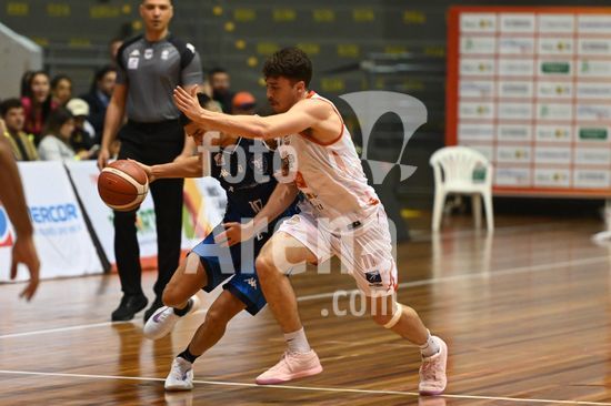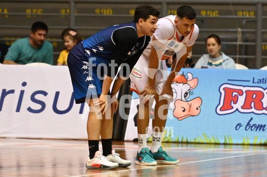 2835368 Imagens da partida de basquete entre o Caxias do Sul Basquete e Rio Claro, disputada no Ginásio do SESI, válida pela quarta rodada do Caxias do Sul Basquete no NBB 25/26. Humberto do Caxias do Sul Basquete e Murilo do Rio Claro. Caxias do Sul, RS (03).