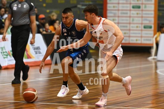 2835429 Imagens da partida de basquete entre o Caxias do Sul Basquete e Rio Claro, disputada no Ginásio do SESI, válida pela quarta rodada do Caxias do Sul Basquete no NBB 25/26. Vezaro do Caxias do Sul Basquete e Scott do Rio Claro. Caxias do Sul, RS (03).