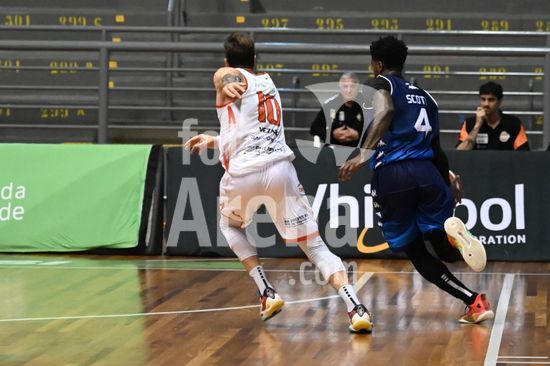 2835383 Imagens da partida de basquete entre o Caxias do Sul Basquete e Rio Claro, disputada no Ginásio do SESI, válida pela quarta rodada do Caxias do Sul Basquete no NBB 25/26. Scott, do Rio Claro. Caxias do Sul, RS (03).
