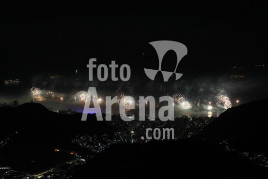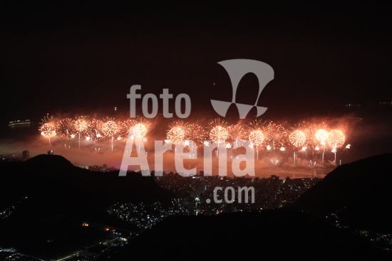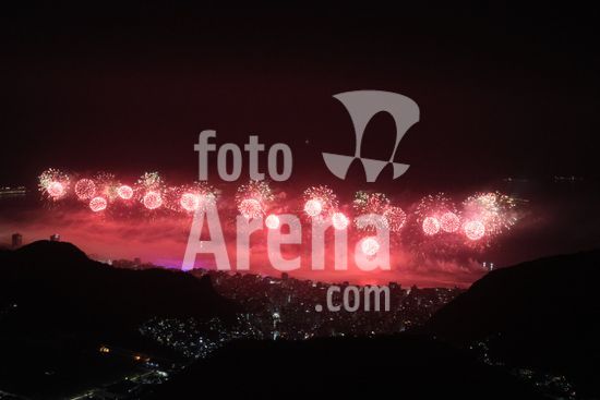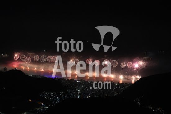 2863807 Queima de fogos durante o réveillon 2026 no Rio de Janeiro vista do alto do corcovado.