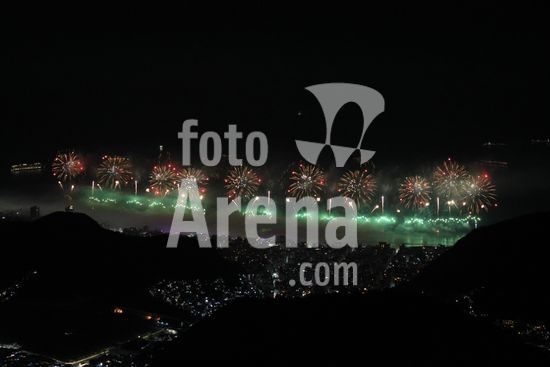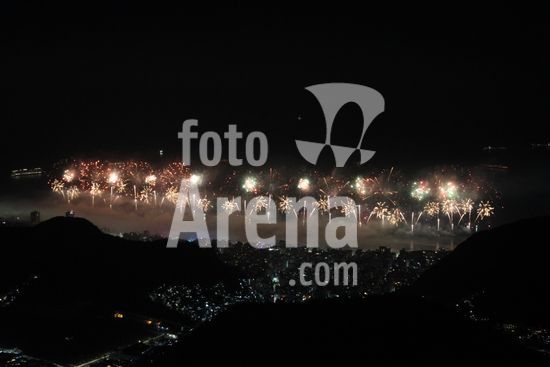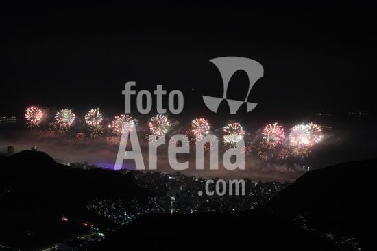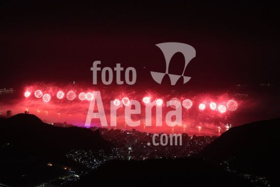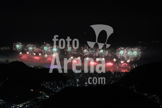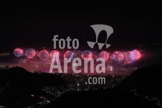 2863805 Queima de fogos durante o réveillon 2026 no Rio de Janeiro vista do alto do corcovado.