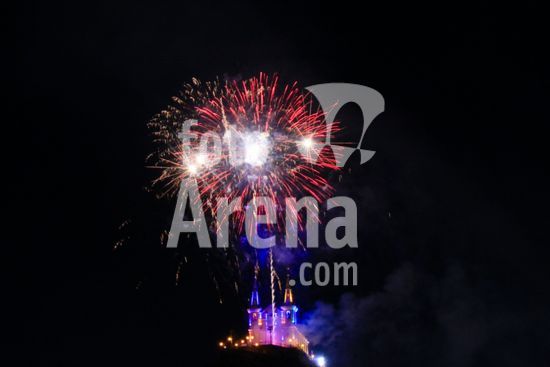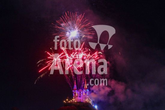 2863820 Queima de fogos na Igreja da Penha durante o réveillon 2026 no Rio de Janeiro.