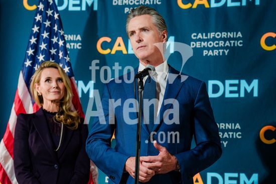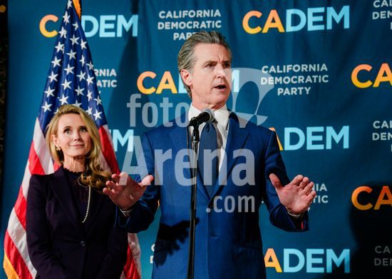 ny051125102013 California Gov. Gavin Newsom and his wife, Jennifer Siebel Newsom, hold a press conference after Proposition 50 passed at the John L. Burton Democratic Headquarters in Sacramento, Calif., Tuesday, Nov. 4, 2025. (Gabriela Bhaskar/The New York Times/Fotoarena)