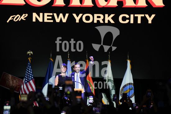ny051125105811 State Assemblyman Zohran Mamdani, the Democratic candidate for mayor of New York City, along with wife Rama Duwaji take the stage to deliver remarks after his victory was announced during an election night watch party in Brooklyn, on Tuesday, Nov. 4, 2025. Mamdani, a 34-year-old state lawmaker who transformed himself into an electrifying voice for New Yorkers disillusioned with runaway living costs and a scandal-plagued old guard, was elected the city?s 111th mayor on Tuesday. (Todd Heisler/The New York Times/Fotoarena)
