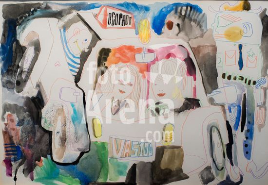 2843091 Exposição Cidade Iturrusgarai do artista Adão Iturrusgarai na Sala de Arte do Canto, nesta sexta-feira (14) em São Paulo. Na foto, obra Sobre duas rodas, 2019.