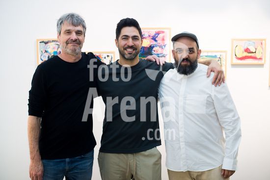 2843096 Exposição Cidade Iturrusgarai do artista Adão Iturrusgarai na Sala de Arte do Canto, nesta sexta-feira (14) em São Paulo. Na foto, o artista Adão Iturrusgarai com diretores de exposição.
