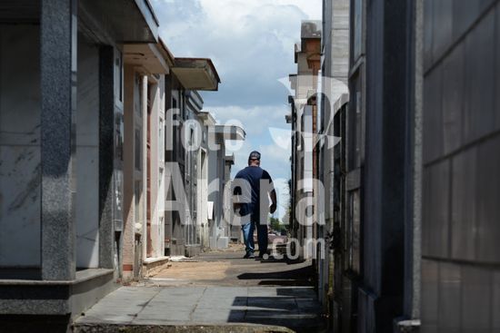 2833777 Imagens de pessoas realizando limpeza de jazigos e túmulos no Cemitério Público Municipal de Caxias do Sul, em preparação para as homenagens do Dia de Finados. O Cemitério Público Municipal de Caxias do Sul foi inaugurado em maio de 1901, quando o Estado cedeu ao município de Caxias do Sul uma área de 42.196 m². Antes dessa data os sepultamentos eram realizados no "antigo cemitério", situado entre as ruas Bento Gonçalves e Moreira César. O primeiro sepultamento neste cemitério foi o de Abramo Pezzi, no dia 6 de maio de 1903. Atualmente encontram-se sepultados aproximadamente 140 mil corpos, distribuídos em 5.200 lotes e 8.300 gavetas. Caxias do Sul, RS (01).