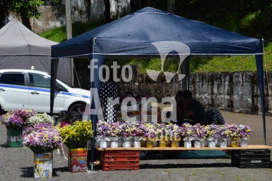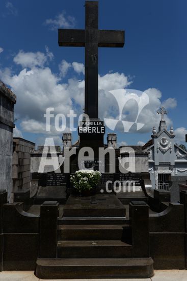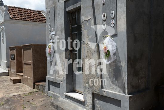 2833800 Imagens de pessoas realizando limpeza de jazigos e túmulos no Cemitério Público Municipal de Caxias do Sul, em preparação para as homenagens do Dia de Finados. O Cemitério Público Municipal de Caxias do Sul foi inaugurado em maio de 1901, quando o Estado cedeu ao município de Caxias do Sul uma área de 42.196 m². Antes dessa data os sepultamentos eram realizados no "antigo cemitério", situado entre as ruas Bento Gonçalves e Moreira César. O primeiro sepultamento neste cemitério foi o de Abramo Pezzi, no dia 6 de maio de 1903. Atualmente encontram-se sepultados aproximadamente 140 mil corpos, distribuídos em 5.200 lotes e 8.300 gavetas. Caxias do Sul, RS (01).